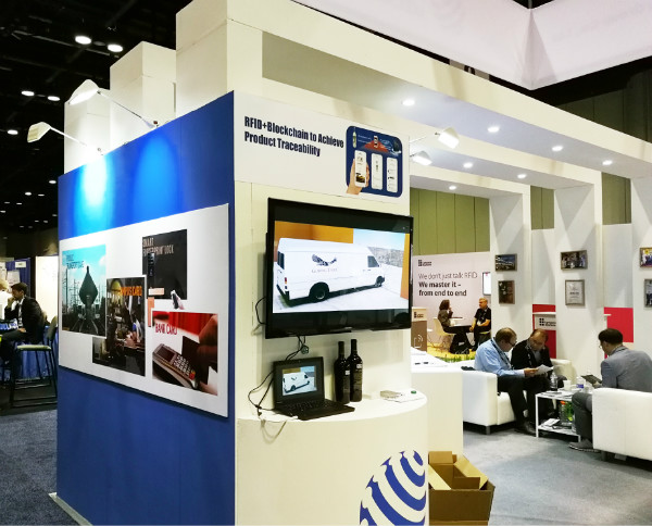 同時(shí),結(jié)合產(chǎn)品的實(shí)際應(yīng)用場(chǎng)景,展臺(tái)也進(jìn)行了案例演示。觀眾對(duì)我司卓越穩(wěn)定的產(chǎn)品性能和綜合應(yīng)用解決方案有了全方位的了解。在跨境商品防偽溯源領(lǐng)域,我司展示了將PUF(物理不可克?。┓纻喂δ艿腞FID標(biāo)簽與區(qū)塊鏈結(jié)合的創(chuàng)新方案。參觀者在現(xiàn)場(chǎng)通過(guò)NFC手機(jī)掃描貼在產(chǎn)自加州納帕谷酒莊的紅酒上的RFID標(biāo)簽,就能接收到該酒的認(rèn)證信息,了解該酒的特點(diǎn)及完整的物流信息。據(jù)悉,這是全球首例將RFID與區(qū)塊鏈結(jié)合應(yīng)用于跨境商品流通的真實(shí)案例。